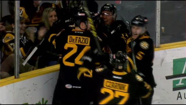 It was a ping pong style third period until the final minute of regulation when Seth Griffith scored his 12th goal of the season to tie the game. Alexander Khokhlachev won the face-off and Griffith collected the puck from the resulting scrum, turned, and fired a shot on net that found twine blocker side.