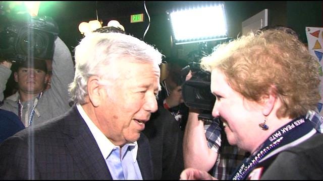 Patriots Owner Robert Kraft Helps Rally Fans In Denver Before AFC Championship