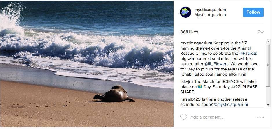 The aquarium named the seal after the Patriots player following the Super Bowl victory.