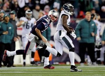 Darren Sproles returned a punt 83 yards for the Eagles’ second special teams touchdown, giving Philadelphia a 21-point lead before the Patriots came charging back.