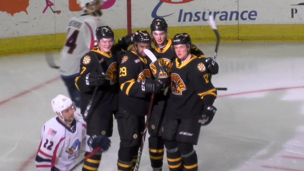 Providence finally tied things up 1:17 into the final period when Gemel Smith beat Montembeault for his eighth goal of the season. Jakub Zboril and Emil Johansson picked up helpers on the play that tied the score 2-2. Providence made a comeback in the final period when Gemel Smith scored a goal a minute into the the 3rd, with helpers Zboril and Johansson. Zach Senyshyn completed the comeback at 12:30, netting the game winning goal with assists by Smith and Zboril. Springfield pulled their goalie with two minutes left in one last attempt to score, but the P-Bruins held on for a 3-2 win.
