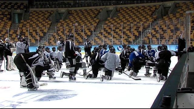 The PC Friars are a win away from their first national championship on skates. The Friars worked out at the Garden on Friday as the prepare to face BU which is coached by Cranston native David Quinn.