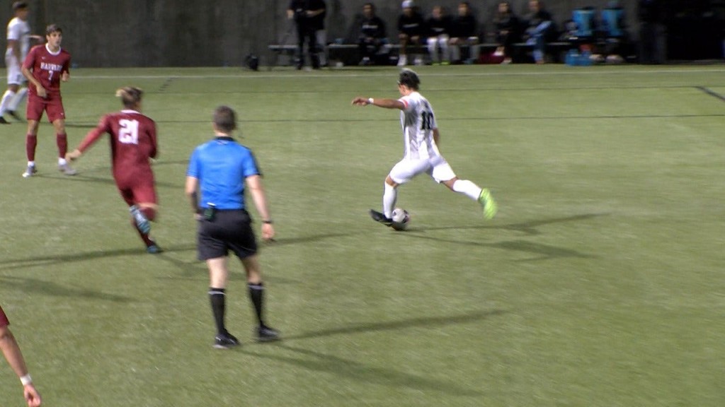 – Austin Aviza (Medway, Mass.) kept the game scoreless in the 16th minute, making his first save of the match. He came off his line and slid at the feet of a Crimson attacker to deny the opportunity.