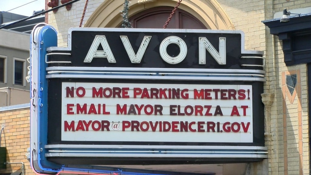 The marquee at the Avon Cinema on Thayer Street in Providence reads “No More Parking Meters!” It’s a clear message to city leaders expressing how the small business feels about their customers having to feed the meter.