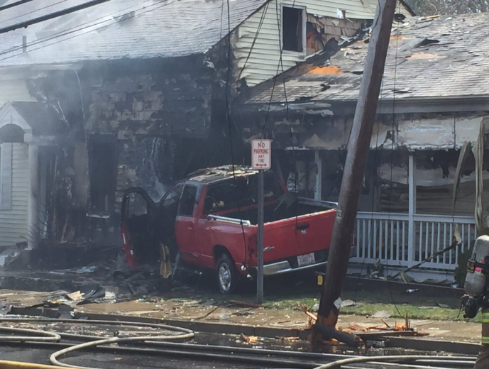 Gagnon’s truck hit the gas meter, causing the it to rupture. The house and truck subsequently burst into flames.