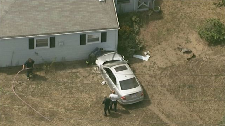Plymouth carjacking results in police chase, car crash into Taunton home