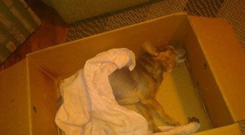 Police investigating dog left abandoned stuffed inside box