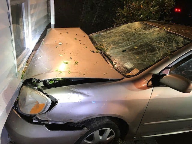 Police say they found a Toyota Corolla crashed into the front of the house upon arrival.