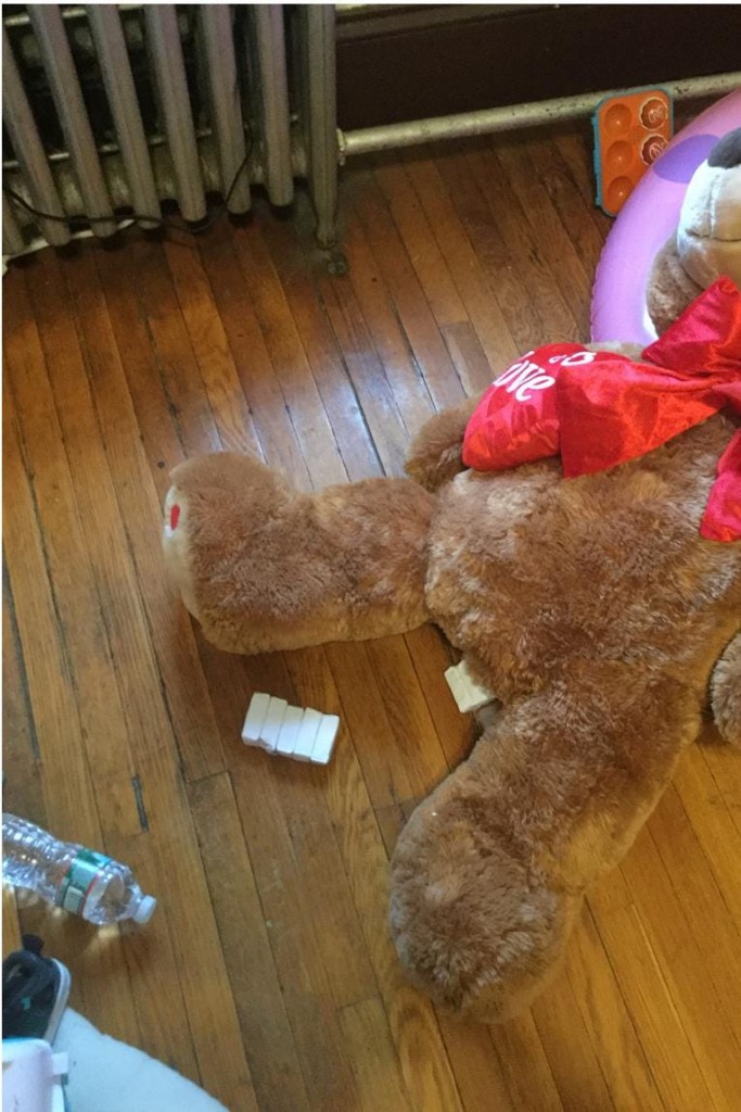 Police also located a child’s teddy bear that contained 750 bags of heroin.