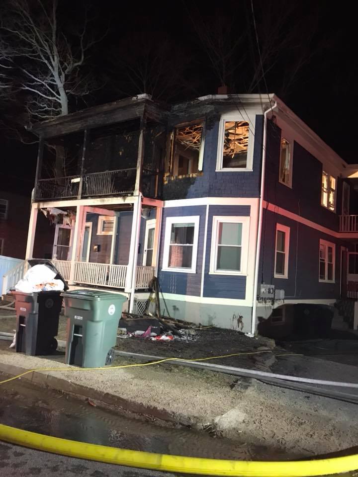 A Coventry police officer out on patrol noticed a fire on the rear porch of a building at 25 Boston Street shortly after 1 a.m.