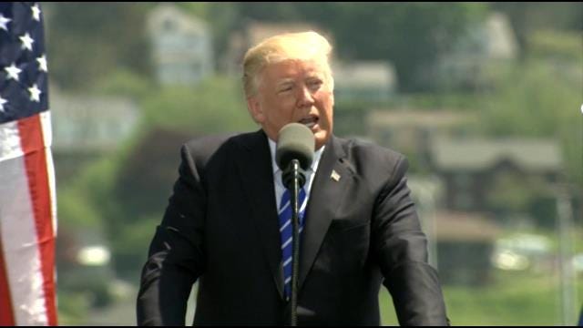 NEW LONDON, Conn. (WLNE) – Hundreds of people cried out, demanding their voices be heard during President Trump’s trip to New London on Wednesday.