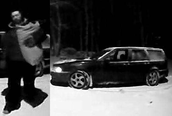 Police describe the vehicle as a 1998 Volvo V70 dark in color with an unknown on registration.