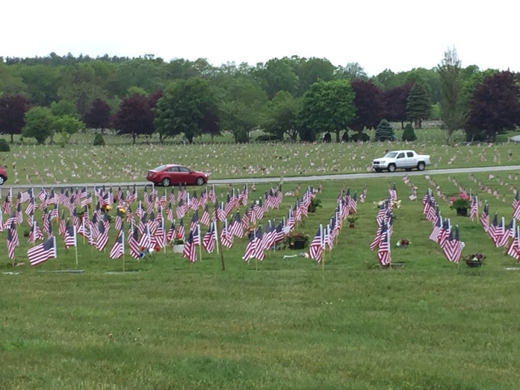 The entire cemetery was covered in American flags.