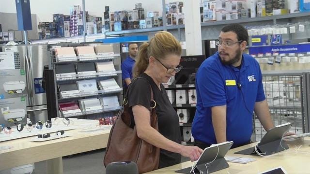 “Tax-free brings shoppers out in droves,” said the general manager of the Best Buy in Seekonk, David Sanders.