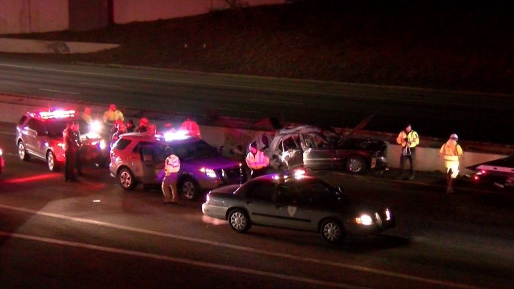Speed is considered a factor in both crashes as the driver clipped a lighted construction sign, lost control of his car and crashed into a jersey barrier before his car burst into flames. He was pronounced dead on the scene.