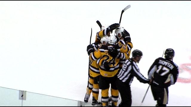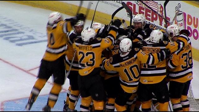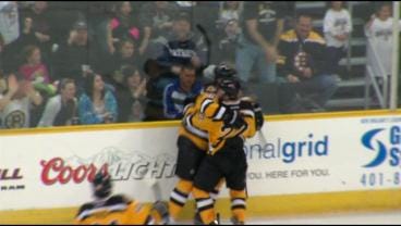 The Providence Bruins defeated the Wilkes-Barre/Scranton Penguins 8-5 Friday evening at the Dunkin' Donuts Center to take a one game to nothing lead in the Eastern Conference Semi-Finals.
