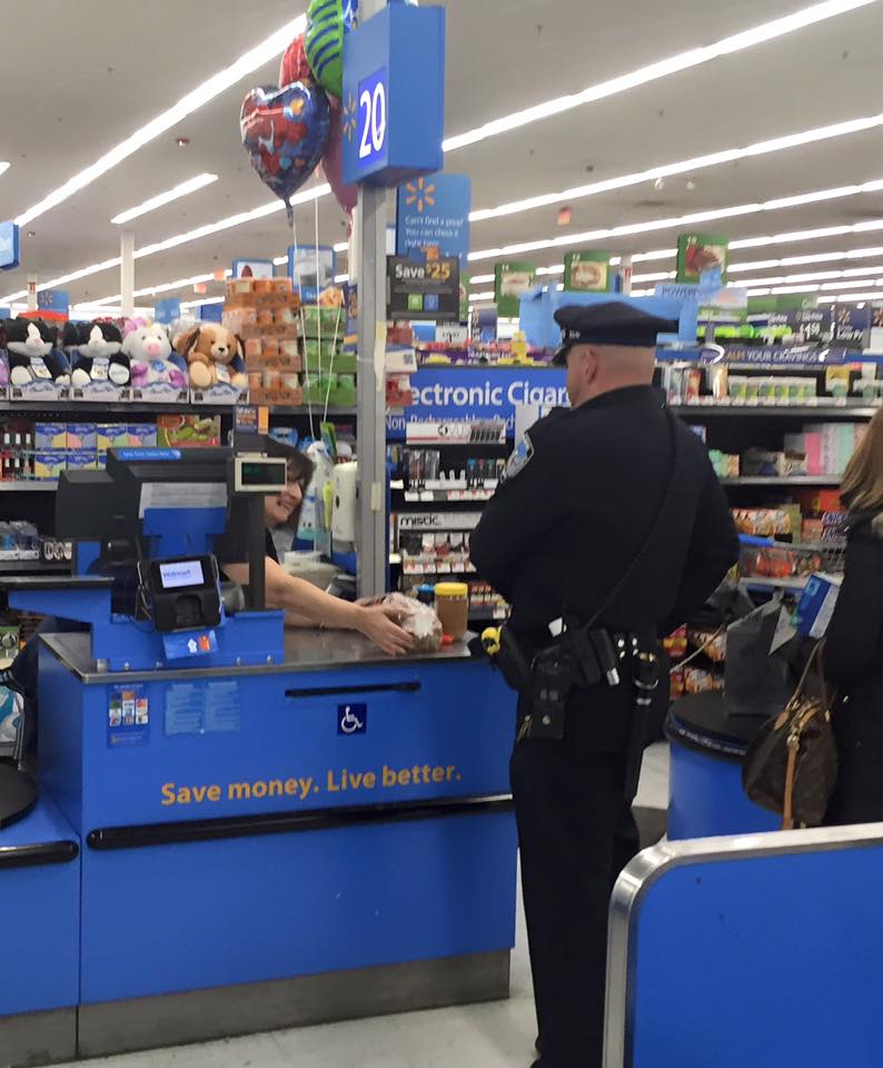 Officer Perry went to her aid after hearing that the woman had not eaten. Perry bought her groceries and even helped secure a hotel room for her to stay in throughout the storm. Photos of Perry buying her food were posted on the department’s Facebook page, and have since been shared thousands of times.