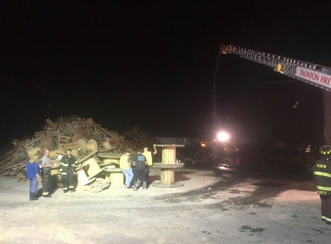 Taunton, Mass- Fire officials in Taunton are battling a structure fire on Prince Henry Dr. The fire started around 7:45pm Thursday night at a building owned by the Lopes Co. Mulch and heavy machinery were in the building.