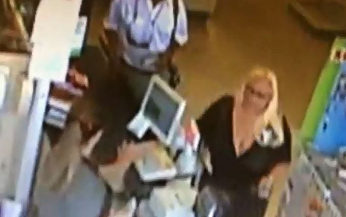Witness reports from all three businesses describe the female suspect as white with bleach blonde hair.