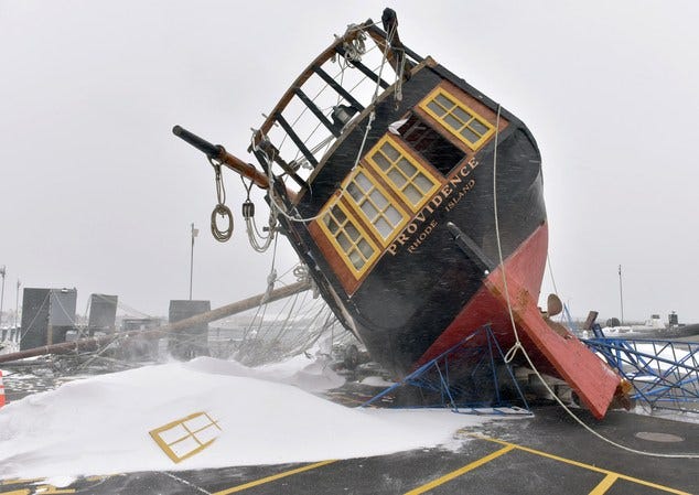 A blizzard back in January 2015 blew the 110-foot vessel off its cradle support at Newport Shipyard, tearing a hole in the hull.