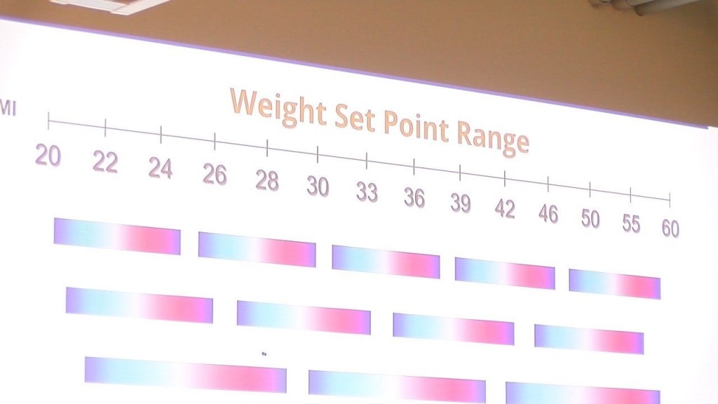 She says research shows that our bodies have a natural “weight set point range.” If we try to get below that range, that’s when we run into trouble.
