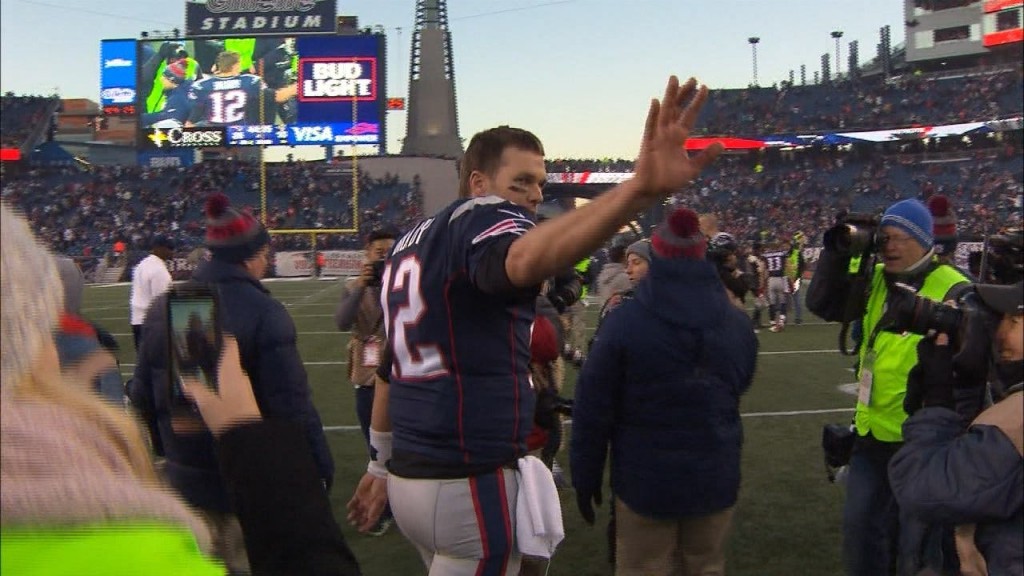 His lone touchdown pass came on a 14-yard pass to Chris Hogan in the first quarter. LeGarrette Blount scored the game’s first touchdown , rumbling for a 43-yard, ankle-breaking score in the first quarter while spinning around safety Maurice Alexander in the process. He finished with 88 yards on 18 carries.