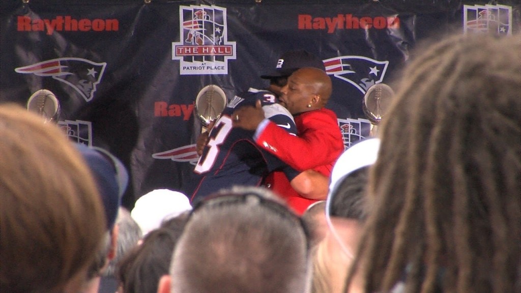 Patriots quarterback Tom Brady made a surprise appearance to help honor his former running back Kevin Faulk who was inducted into the team’s Hall of Fame. It’s the first time he’s spoken since his suspension was upheld by the Appeals Court. Brady was wearing Faulk’s number 33.
