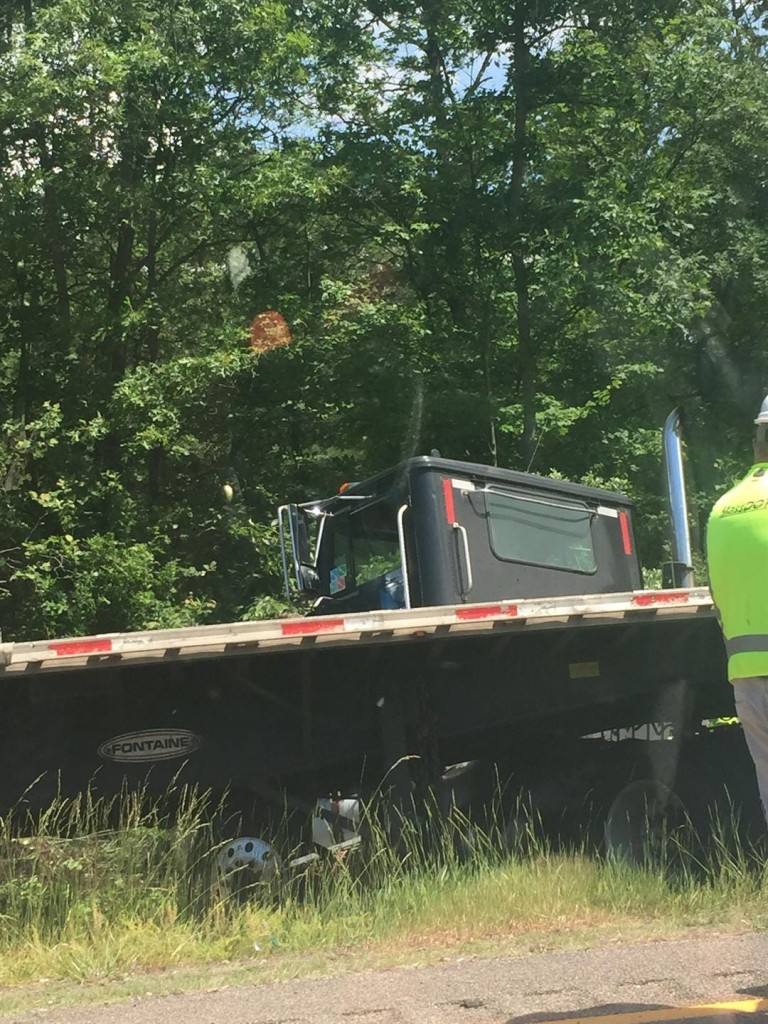 The accident happened at approximately 1:40 p.m. and blocked the left lane while crews cleaned and removed the truck.