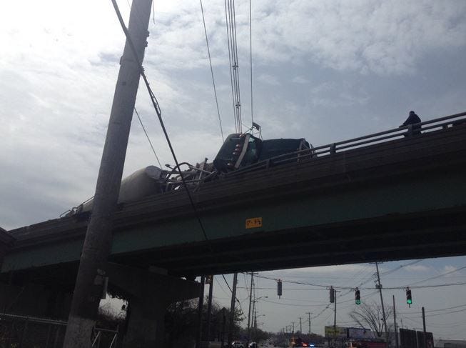 The tractor trailer tipped over Monday morning blocking the on ramp just before 9:30 a.m.