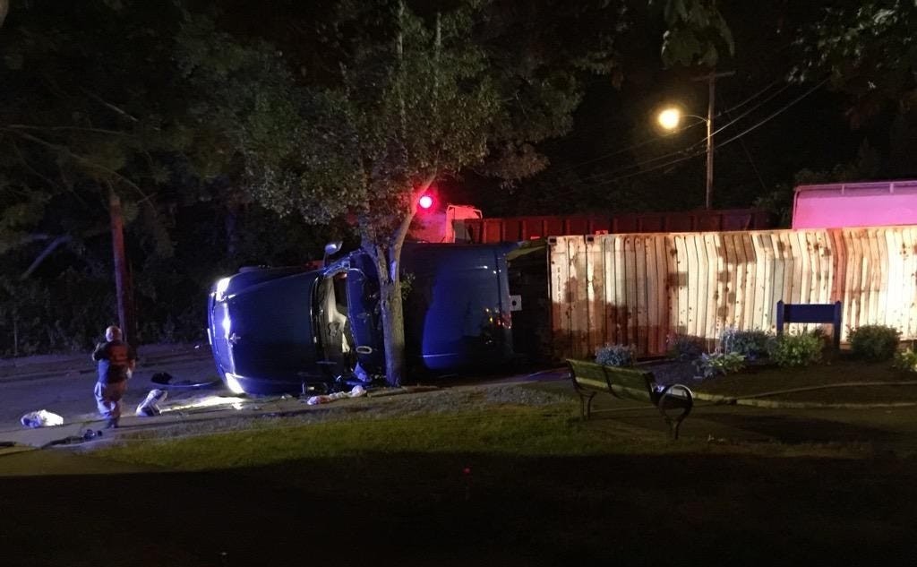The accident happened around 10 p.m. Wednesday night near the intersection of Fairmount and River Streets. It appears the train, traveling southbound, clipped the corner of the truck, causing it to flip.