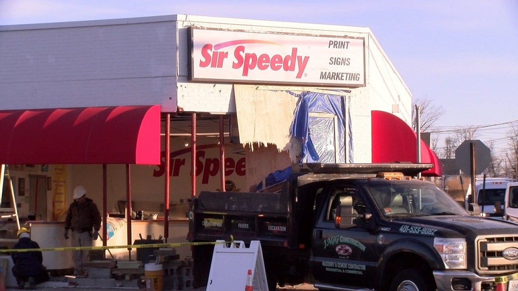 CRANSTON, R.I. (WLNE) — It was a different kind of work this morning for employees at a Cranston Sir Speedy location, after a truck came barreling through the front doors just before 1:00 AM Friday.