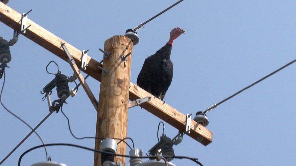 Later, the turkey was caught on camera peeking in on the employee through the window blinds at town hall. After that, it watched over its territory from the top of a telephone pole.