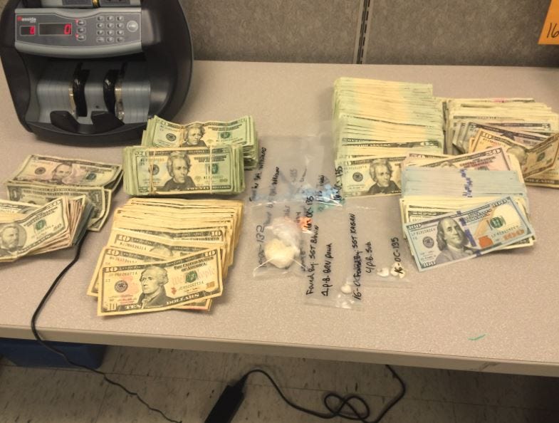 Inside the apartment, where Gomes was found packaging narcotics, investigators found $1,000 worth of cocaine, heroin, prescription pills, .223 caliber ammunition, and over $30,000 in cash.