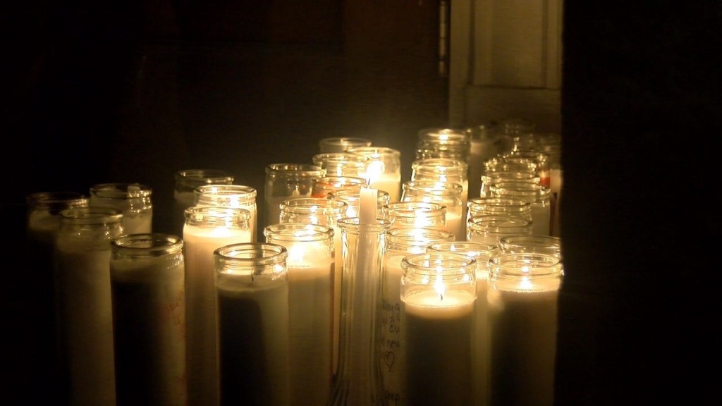 Candles, flowers, and pictures were laid out on the steps of the church in honor of the teen’s memory.