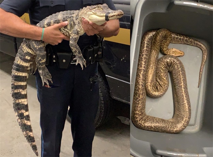 Environmental Police seized an alligator, python, and two tarantulas from the scene.