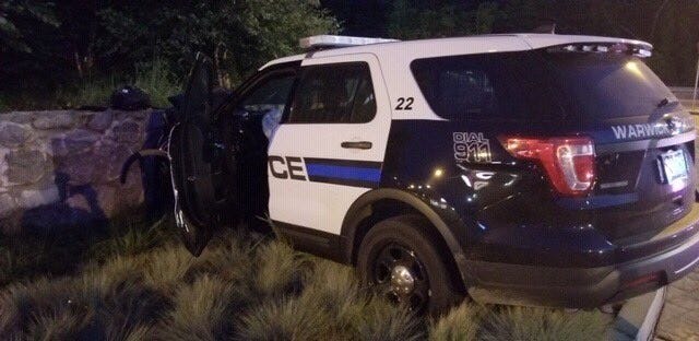 Police say at approximately 2:34 a.m, they responded to a report of a crash at the roundabout of Veterans Memorial Drive and Greenwich Ave in Warwick.