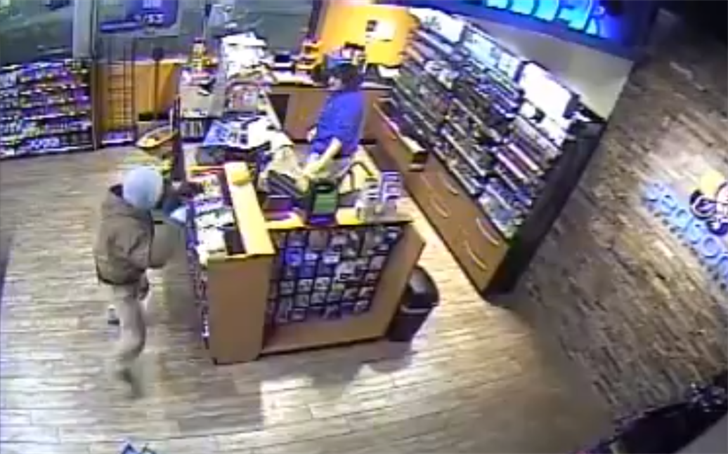 It happened after 3 this morning. The clerk was alone in the store and in the middle of a money drop when he burst in, cash was sitting out on the counter.