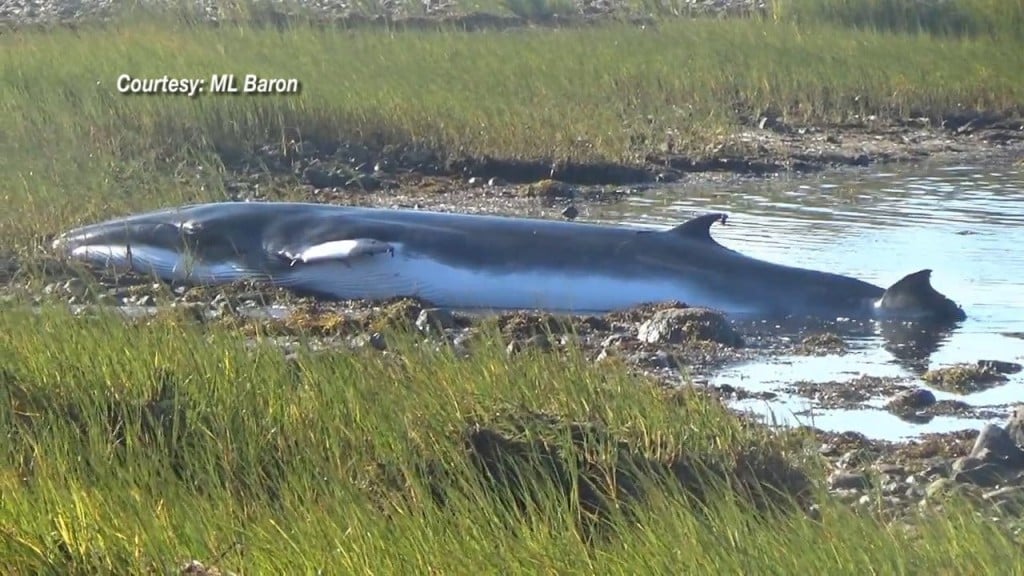 FAIRHAVEN, M.A. (WLNE) – Fairhaven official worked Tuesday morning to save this stranded whale at Hoppy’s Landing.