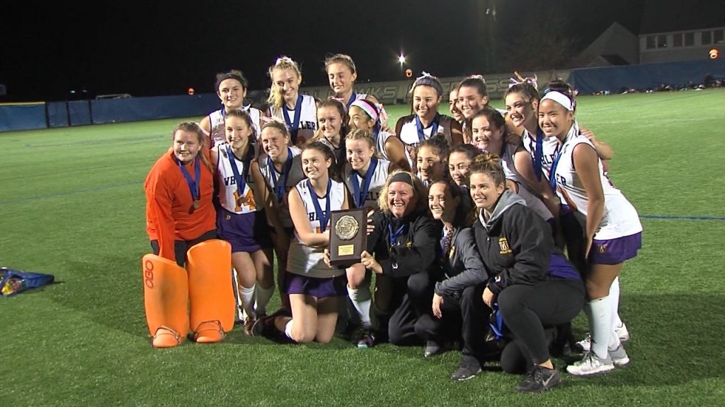 Grace Moorhead redirecting a goal in for Wheeler off a penalty corner to lift the Warriors over Lincoln School, 1-0, with no time left in regulation to win the Division II field hockey title.