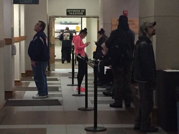 Klassner filed his Rhode Island state tax return nine weeks ago. He couldn’t wait any longer for his refund so he showed up to the Department of Revenue, only to find a line of dozens of others in the same boat.
