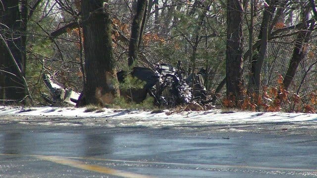 Officers responded to Worcester Street on a report of debris in the road. Police say they found the crashed car well into a wooded area, and the woman was found dead nearby.