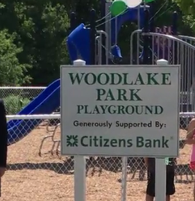 The playground is located in Woodlake Park on Reservoir Avenue.