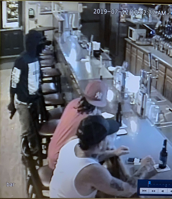 Police say a dark-skinned male suspect wearing a hooded sweatshirt and a ski mask pointed a gun at the bartender, demanding money from the register.