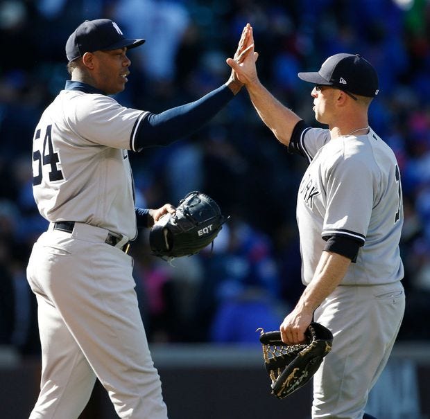 Jonathan Holder, Chad Green and Dellin Betances each pitched a perfect inning before Chapman’s wild ride.